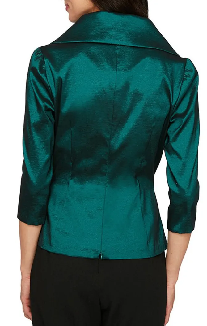 3/4 Sleeve Surplice Stretch Taffeta Blouse With Tie Waist Detail